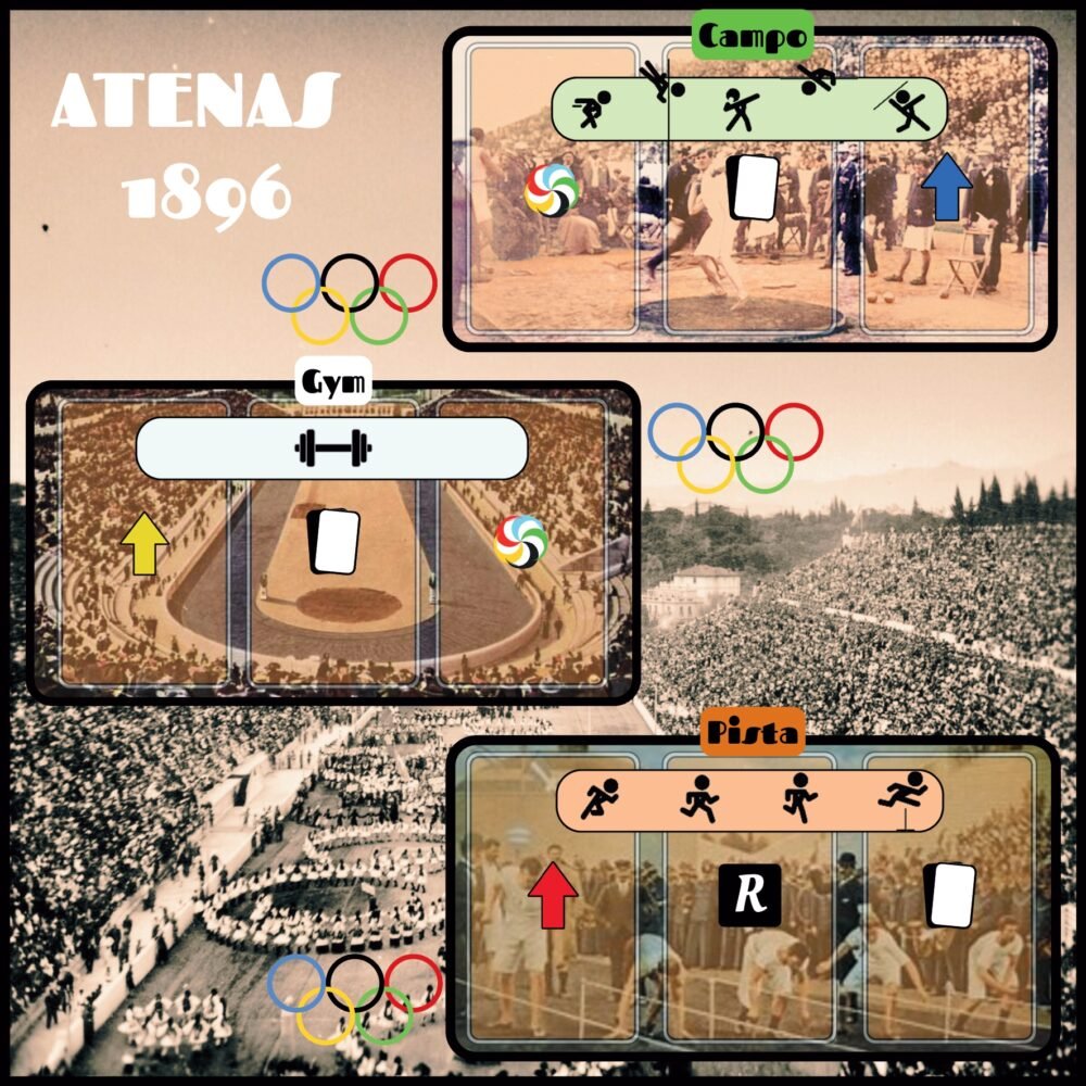 En Atenas 1896, cada jugador asumirá el papel de un atleta que competirá en diversas disciplinas contra cuatro contrincantes. Desde carreras de velocidad hasta pruebas de salto y lanzamiento, cada desafío te llevará al límite. Utiliza tu ingenio para planificar el entrenamiento y superar a tus oponentes en cada prueba, ¡pero cuidado! El juego también incluye obstáculos y retos imprevistos que pueden cambiar el rumbo de la competición.